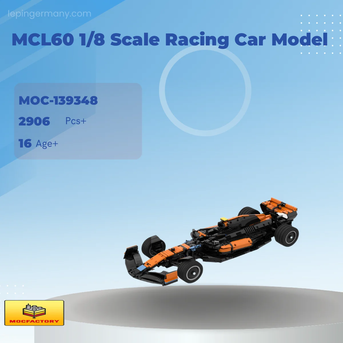 MOC Factory 139348 MCL60 1/8 Scale Racing Car Model with 2906 Pieces