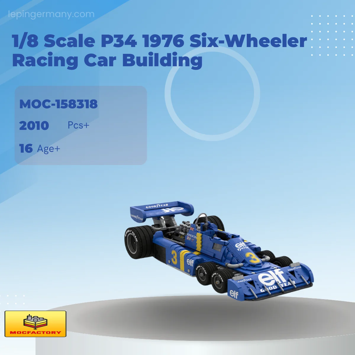 MOC Factory 158318 1/8 Scale P34 1976 Six-Wheeler Racing Car Building with 2010 Pieces