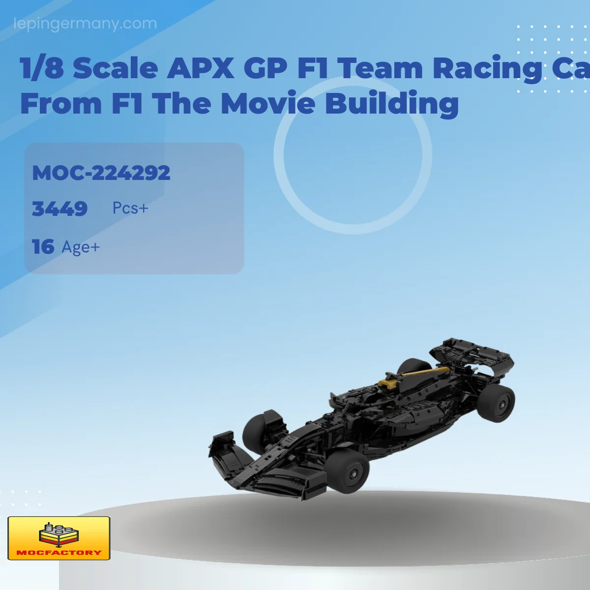 MOC Factory 224292 1/8 Scale APX GP F1 Team Racing Car From F1 The Movie Building with 3449 Pieces