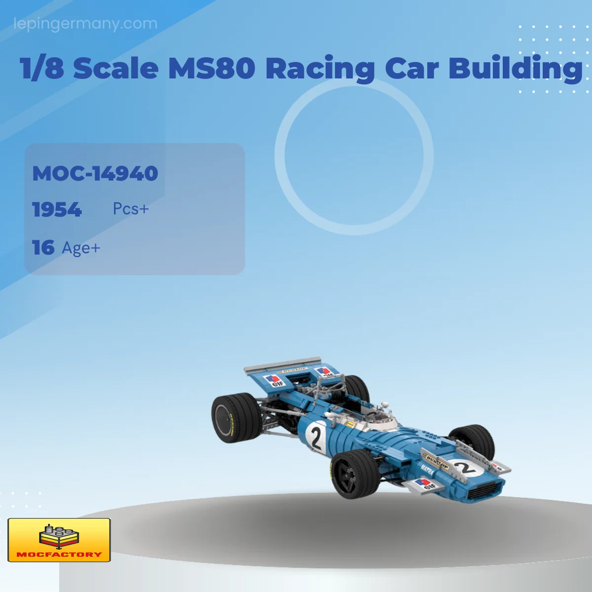 MOC Factory 14940 1/8 Scale MS80 Racing Car Building with 1954 Pieces
