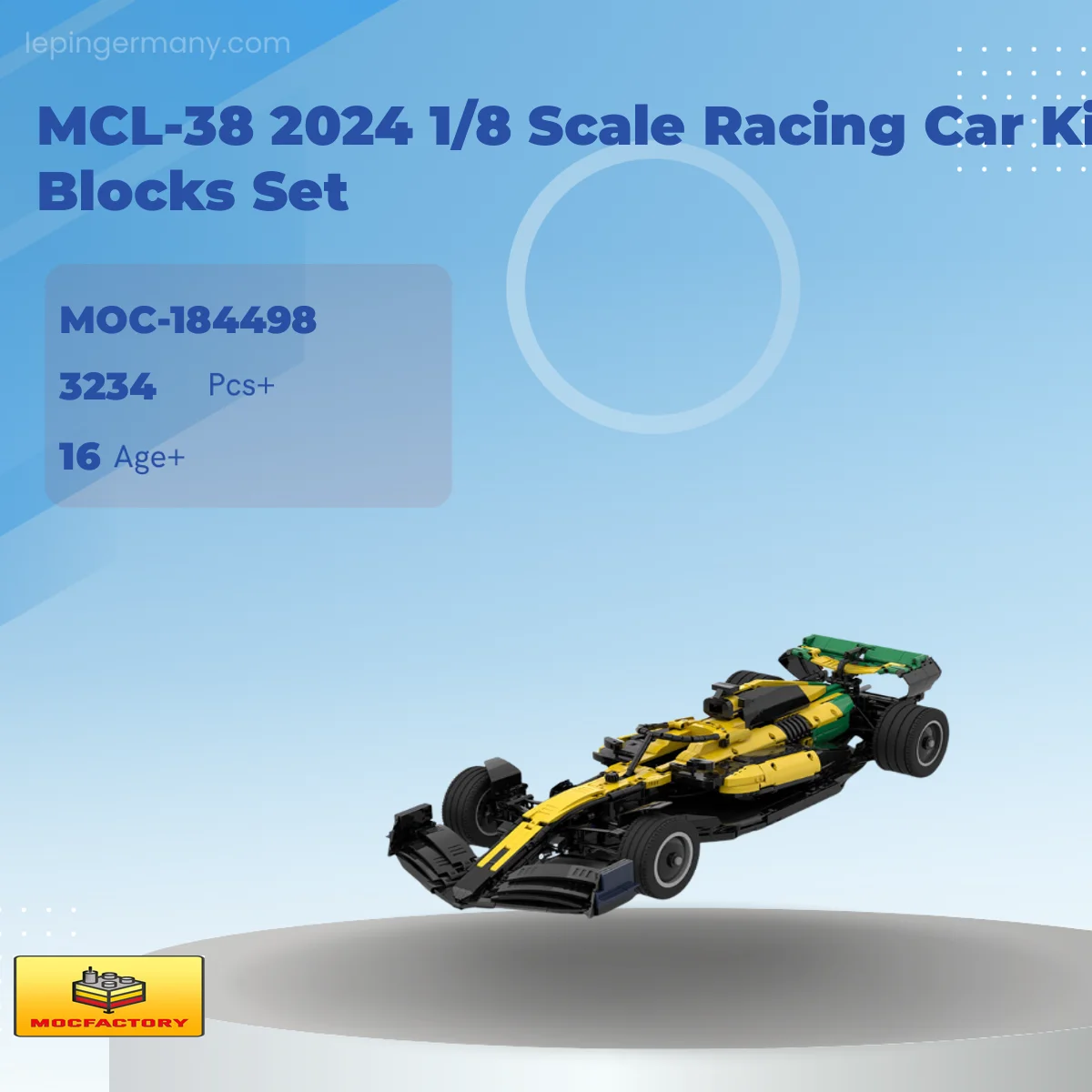MOC Factory 184498 MCL-38 2024 1/8 Scale Racing Car Kit Blocks Set with 3234 Pieces