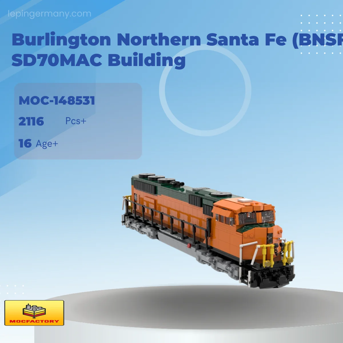 MOC Factory 148531 Burlington Northern Santa Fe (BNSF) SD70MAC Building with 2116 Pieces