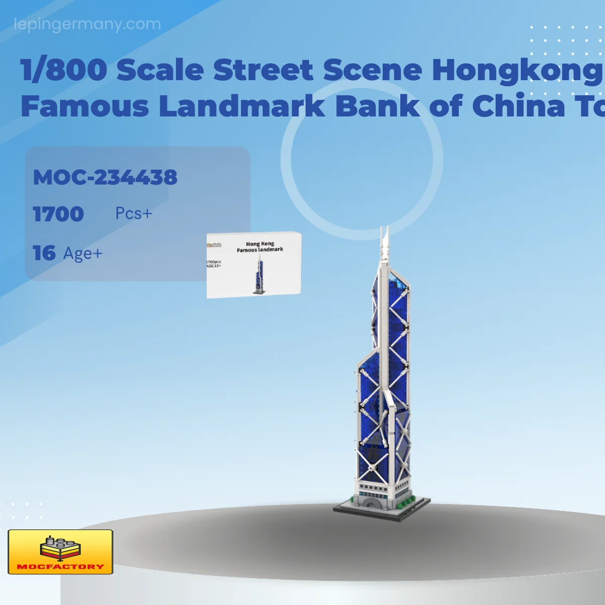 MOC Factory 234438 1/800 Scale Street Scene Hongkong Famous Landmark Bank of China Tower Skyscraper Building with 1700 Pieces